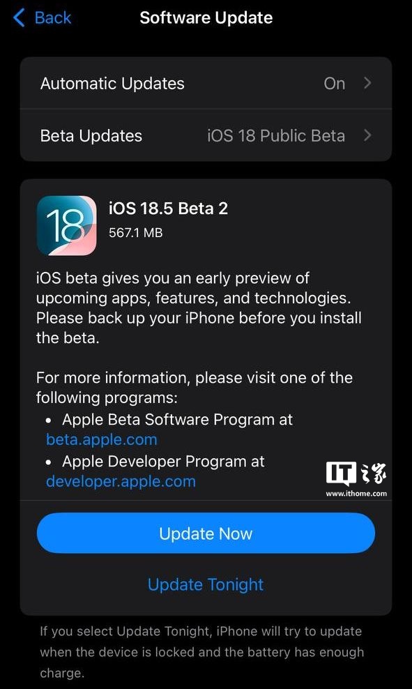 IT之家注:在昨日发布 iOS 18.5、iPadOS 18.5 以及 macOS 15.5 Sequoia 系统的第 3 个开发者预览版后,苹果公司今天迅速启动了公测版,在稳定版发布前,让普通用户有机会测试新功能和改进。