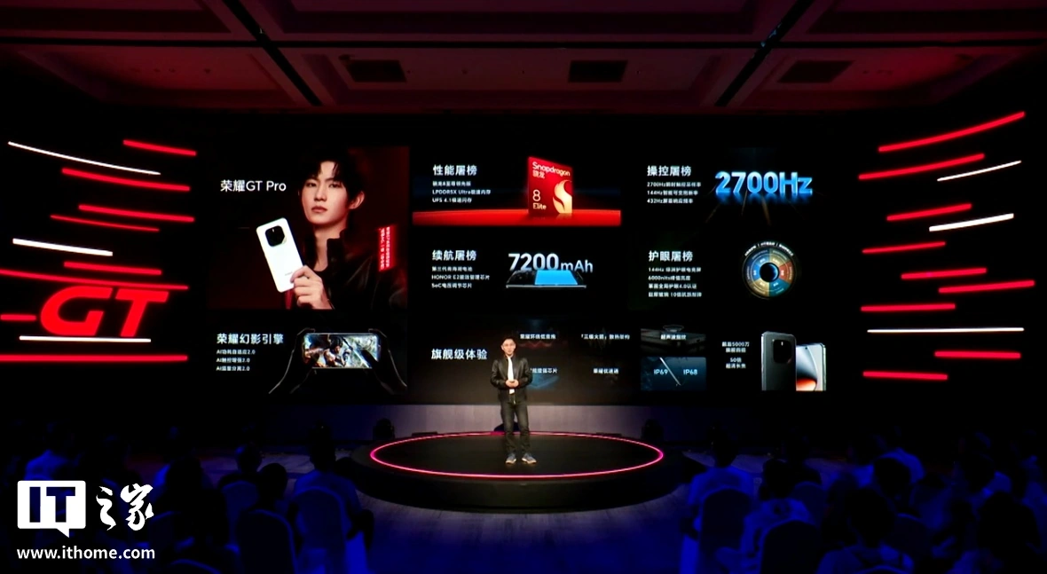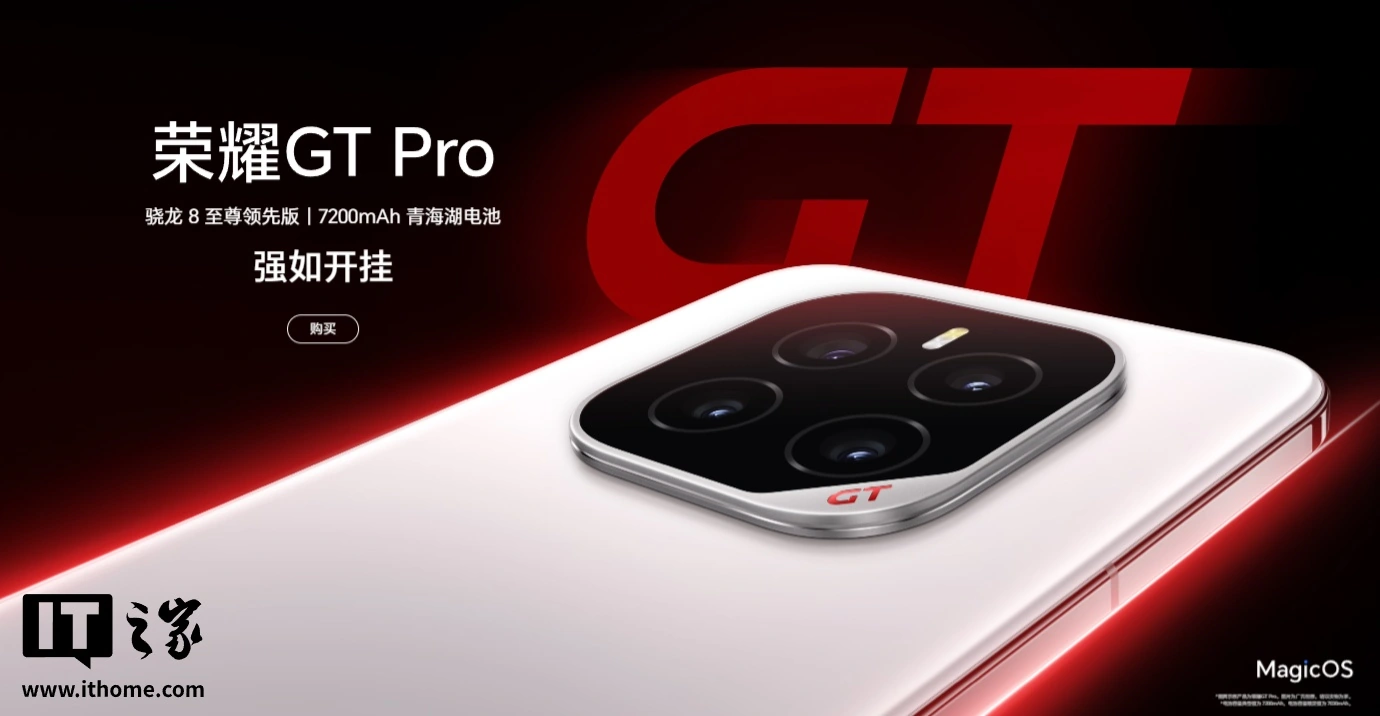 文章来源于互联网:IT之家-荣耀 GT Pro 手机发布:骁龙 8 至尊领先版处理器、144Hz 绿洲护眼电竞屏,3699 元起