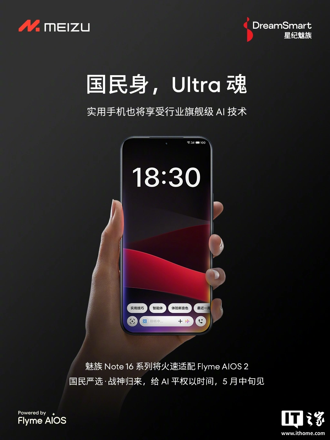 IT之家 4 月 23 日消息,星纪魅族科技昨日宣布,为了让魅族 Note 16 系列出厂搭载 Flyme 12 系统,他们做出了艰难的选择,即推迟手机的发布时间,系列新机将延期至 5 月中旬发布。