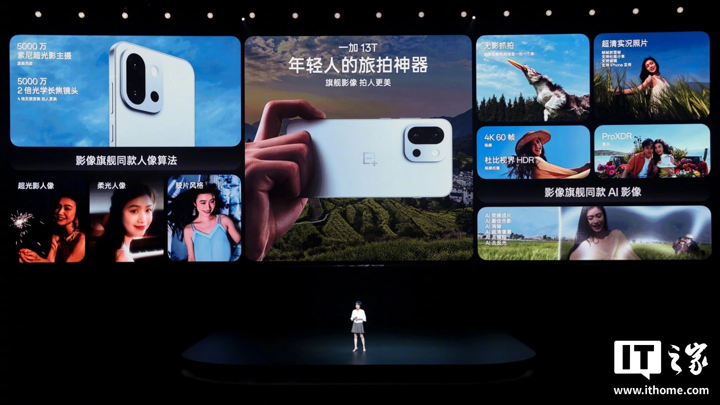 影像方面,一加 13T 搭载旗舰同款影像 ——5000 万超光影旗舰影像 + 2 倍光学长焦镜头,支持 4 倍无损变焦、全新黄金人像模式、旗舰同款 AI 影像、旗舰同款无影抓拍、超清实况照片。