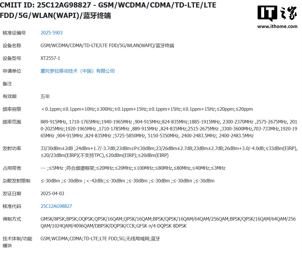 文章来源于互联网:IT之家-摩托罗拉 XT2557-1 手机通过 3C 认证,支持 68W 有线快充
