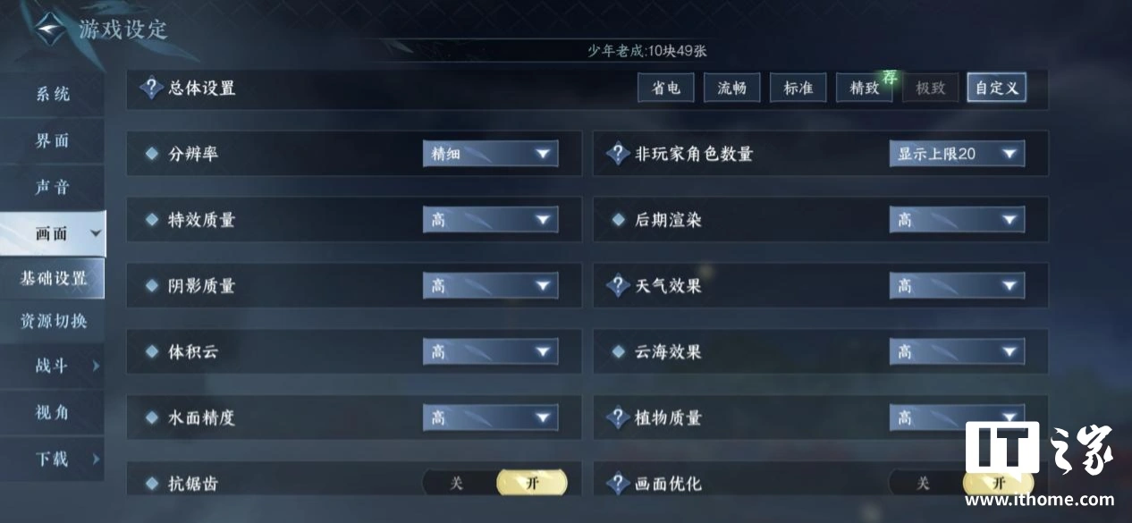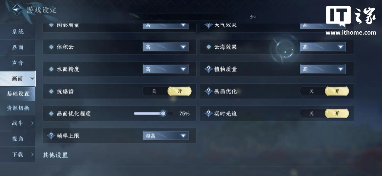 最后我们还测试了性能压力同样不小的开放世界手游《逆水寒》,这款游戏的画面选项非常多,还支持了实时光追,我们尽可能将选项都调到最高进行测试。