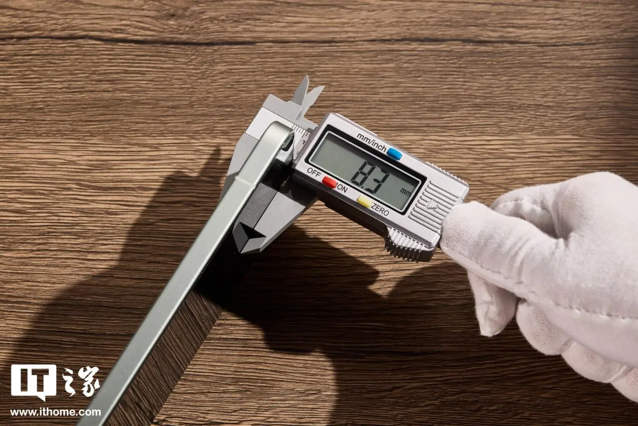 机身三围方面,长和宽分别为 163.10mm、77.93mm,机身厚度实测为 8.3mm,重量实测为 223g。