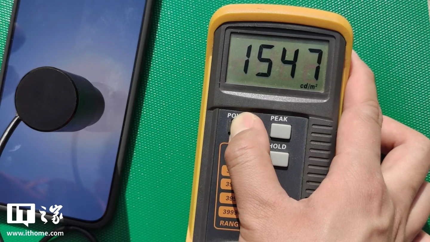 测试时,小编在白天强烈阳光下开启阳光模式,测到亮度也以达到 1547nits,在这个亮度下即便是在户外中午,也能清楚看清屏幕上的内容。