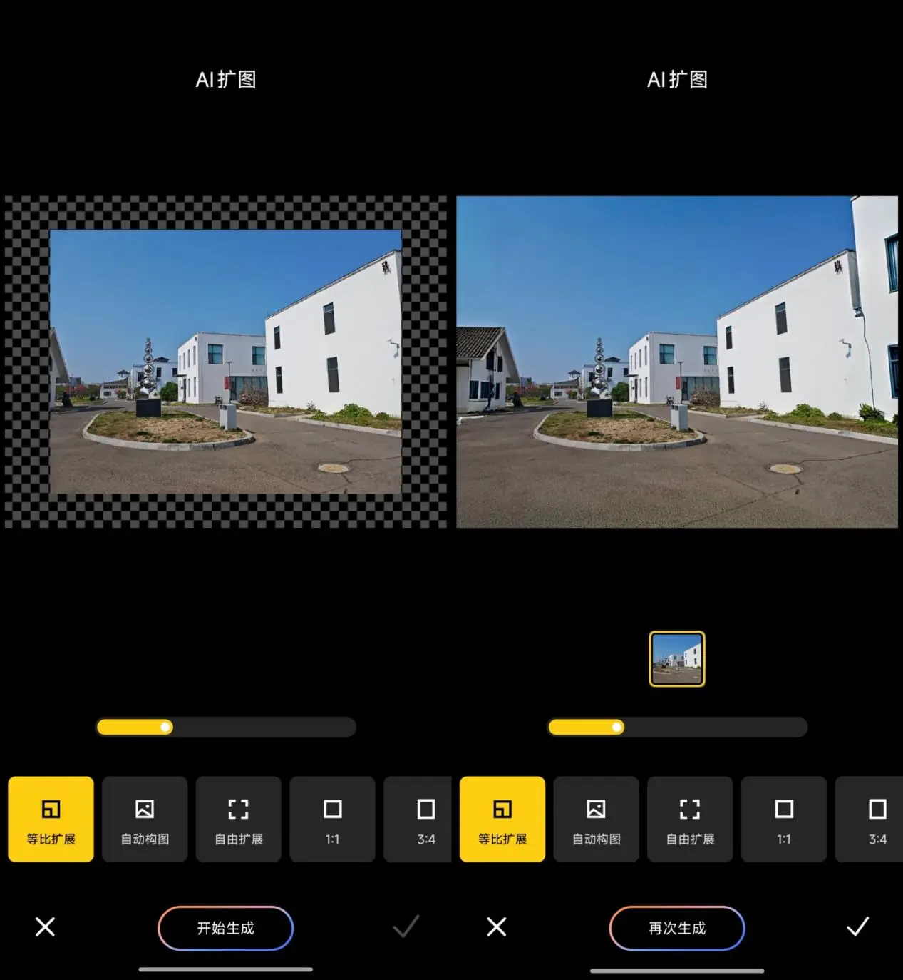 除了消除,你还可以使用 AI 来进行扩图。比如小编选择下面这张照片进行扩图,Turbo 4 Pro 能够将画面两边的建筑进行比较自然的补充,画面整体看起来并不违和。