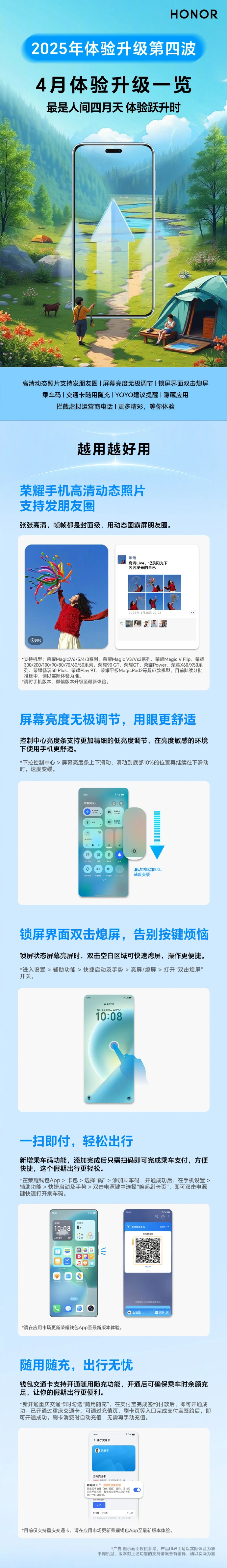 文章来源于互联网:IT之家-荣耀手机 4 月升级一览:高清动态照片支持发微信朋友圈、屏幕亮度无极调节等