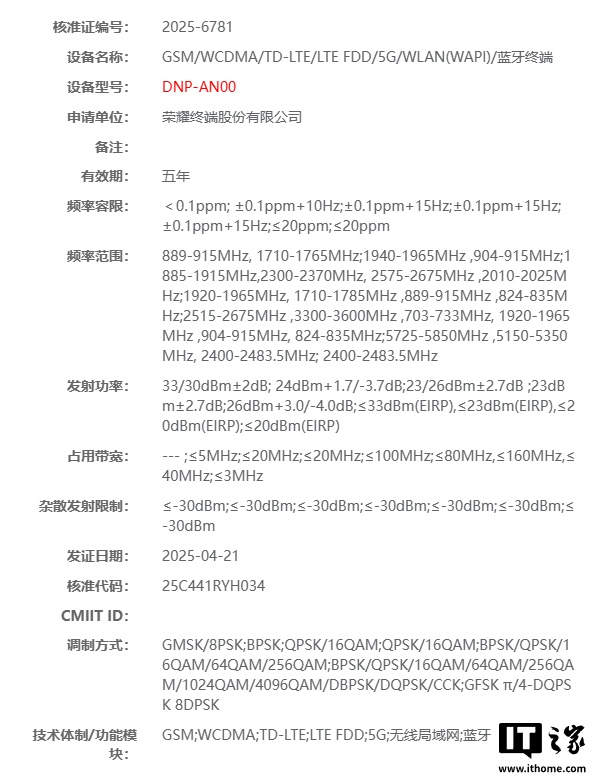 IT之家 4 月 26 日消息,型号为 DNN-AN00、DNP-AN00 的两款新机于 4 月 21 日通过了工信部无线电核准,预计为荣耀 400 系列手机。