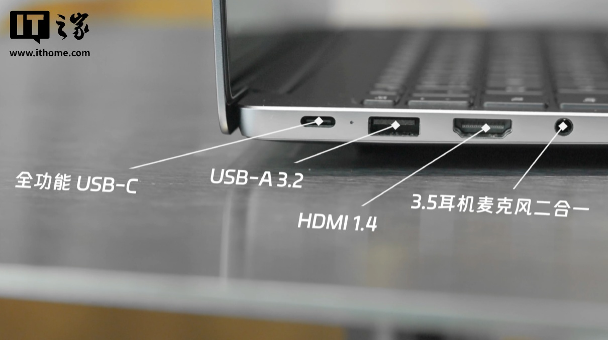 扩展性上,华为擎云 L420x 充分考虑办公需求,配备了极为丰富的接口配置:机身左侧集成全功能 USB-C 接口、USB-A 3.2 接口、HDMI 1.4 接口及 3.5mm 音频接口;