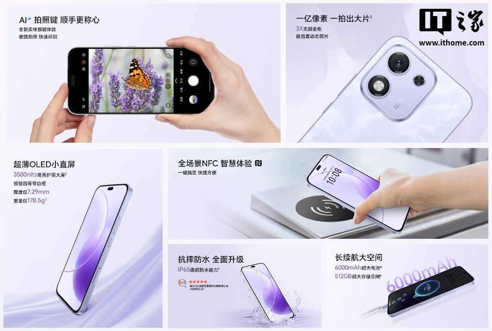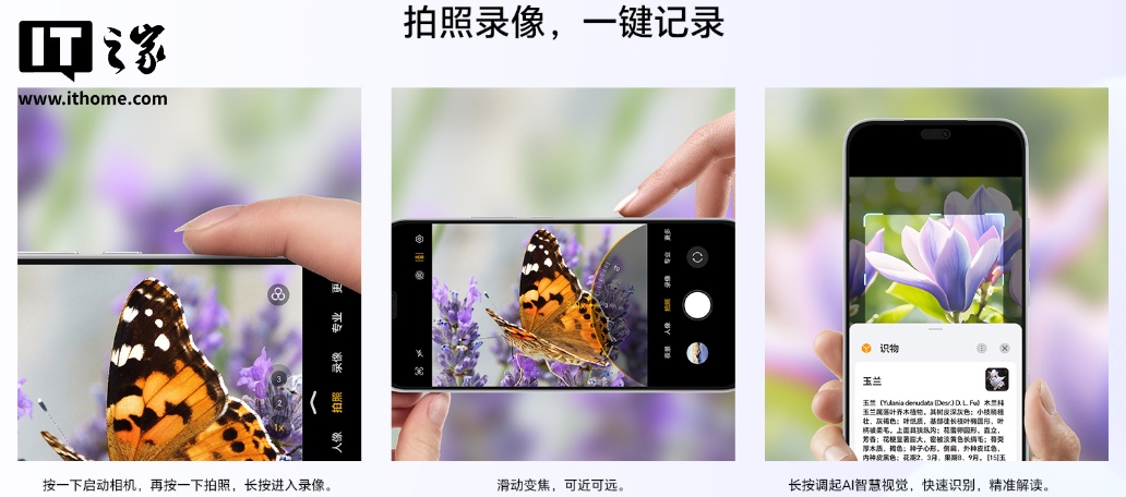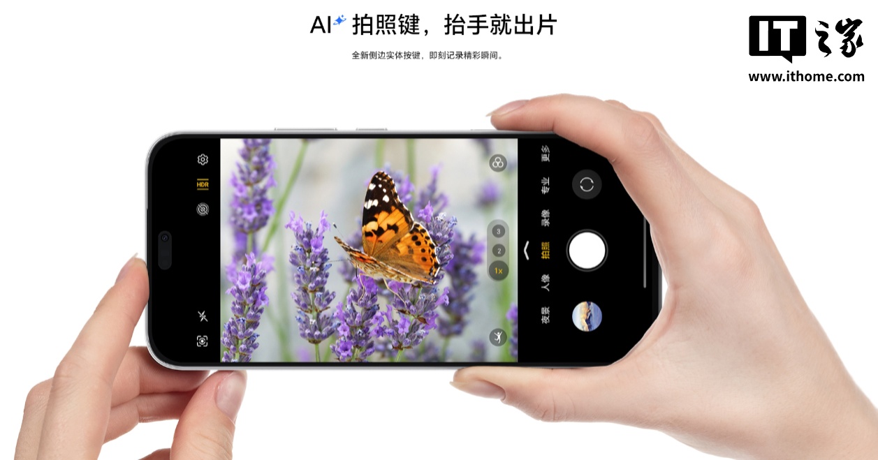 新机配备侧边“AI 拍照键”,支持按一下启动相机、再按一下拍照、长按进入录像。该实体按键还支持滑动变焦、长按调起 AI 智慧视觉功能。