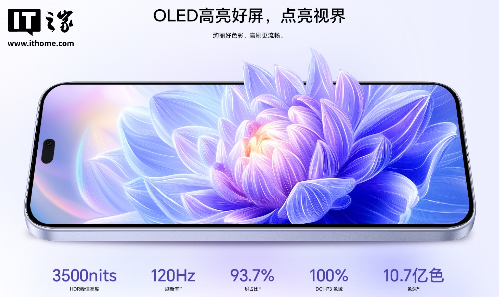 荣耀 X70i 手机后置 1 亿像素主摄,提供 AI 抓拍、AI 扩图、AI 风格动态照片等功能。新机还配备 3500nits 高亮 OLED 屏,支持 10.7 亿色显示、3840Hz 零风险调光、120Hz 刷新率,覆盖 100% DCI-P3 色域,屏占比 93.7%。