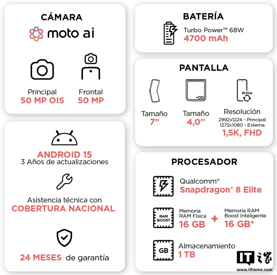 目前,razr 60 Ultra 的海外宣传物料已经曝光,作为摩托罗拉顶级翻盖折叠手机,该机搭载高通骁龙 8 至尊版芯片,提供 16GB RAM 和 1TB 存储空间的顶级配置。