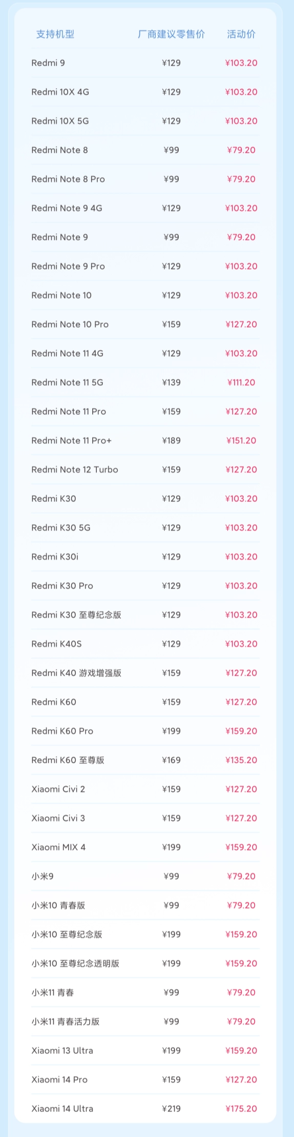 文章来源于互联网:IT之家-小米五月黄金服务周:手机电池换新 79.2 元起,家电清洁一口价 99 元