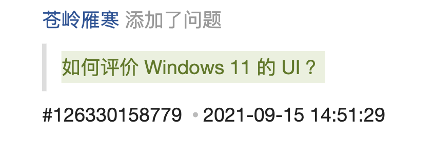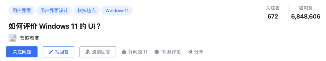 像知乎上有个热门问题叫“ 如何评价 Windows 11 的 UI ”,它在 21 年 9 月就提出了。