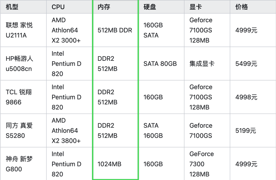 当时( 2007年 ) 5000 价位主流机器的标配内存,一般就是 512M 或者 1G。