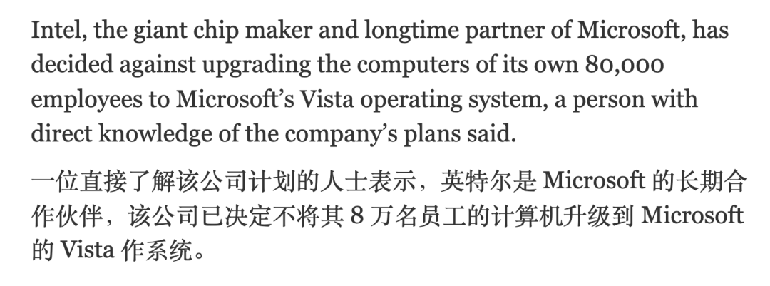 所以当时很多用户升级到 Vista 后体验就非常差,甚至微软的老 CP 英特尔当时都决定不把公司员工升级到 Vista。