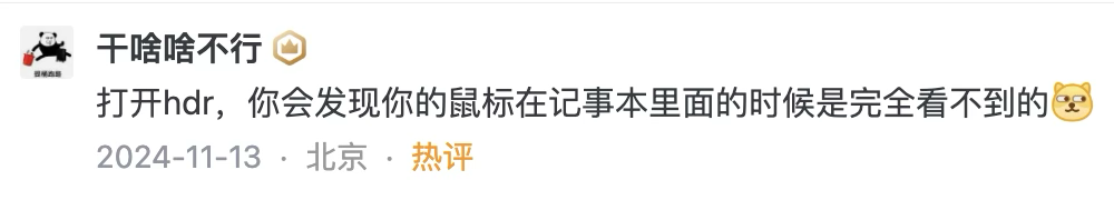类似的“ 消失术 ” 还出现在鼠标上,只要在 HDR 模式下,鼠标就和记事本融为一体,根本找不到。
