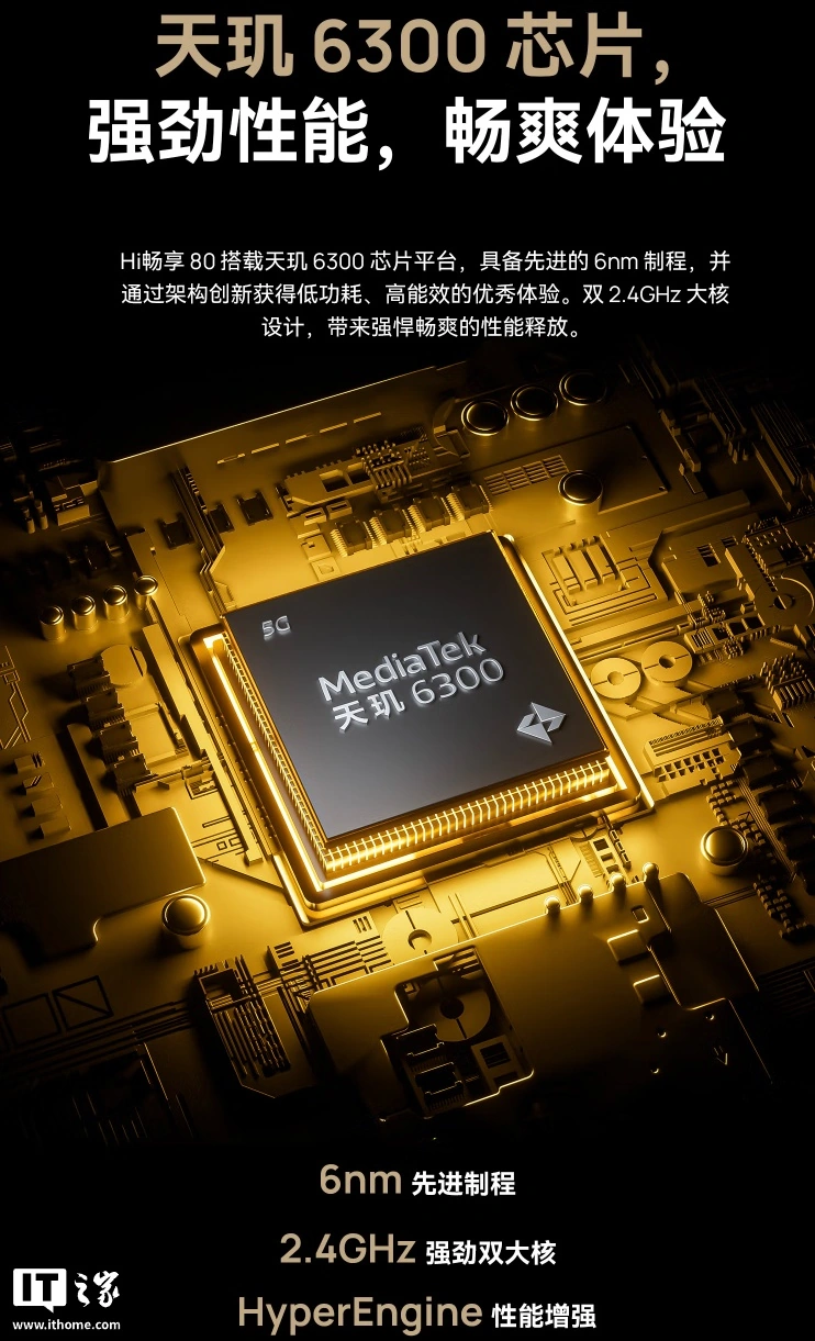文章来源于互联网:IT之家-WIKO Hi 畅享 80 手机发布:天玑 6300 芯片、6.56 英寸 LCD 直屏,国补价 849.15 元起