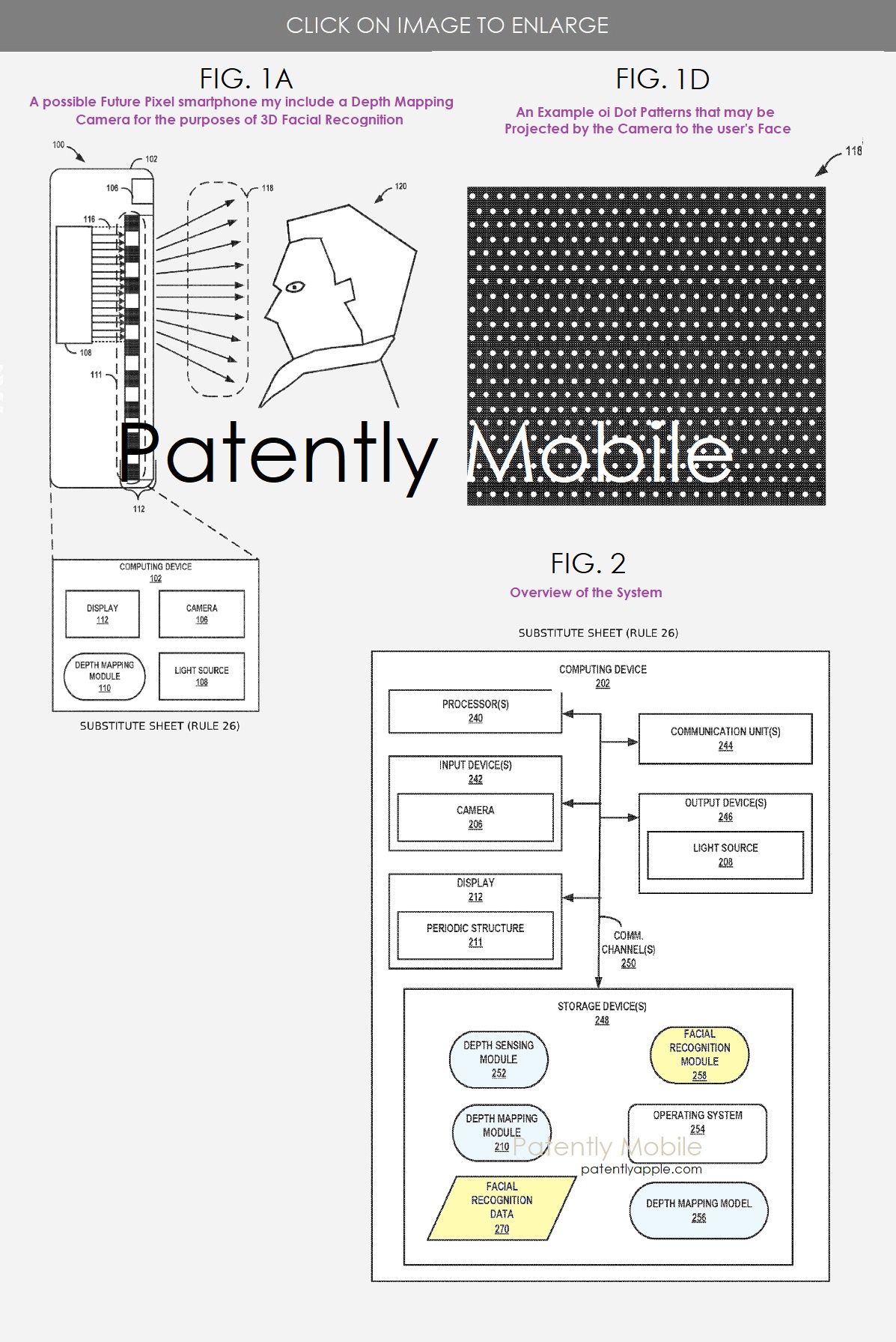 谷歌该专利让智能手机通过显示屏生成光点图案,用于三维场景的深度映射(Depth Mapping)。