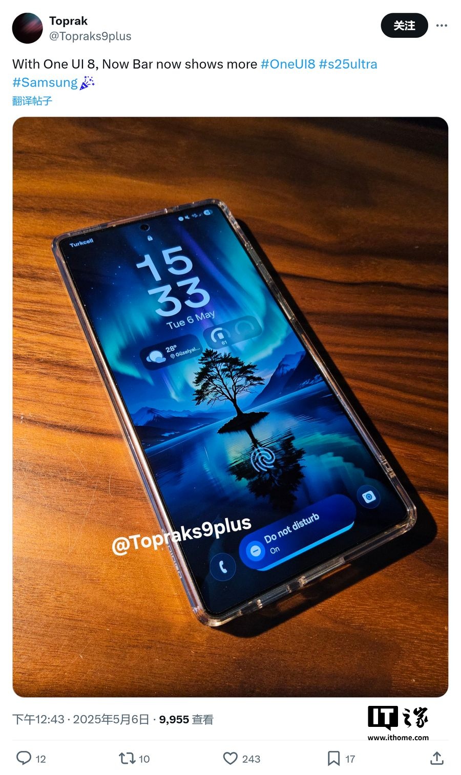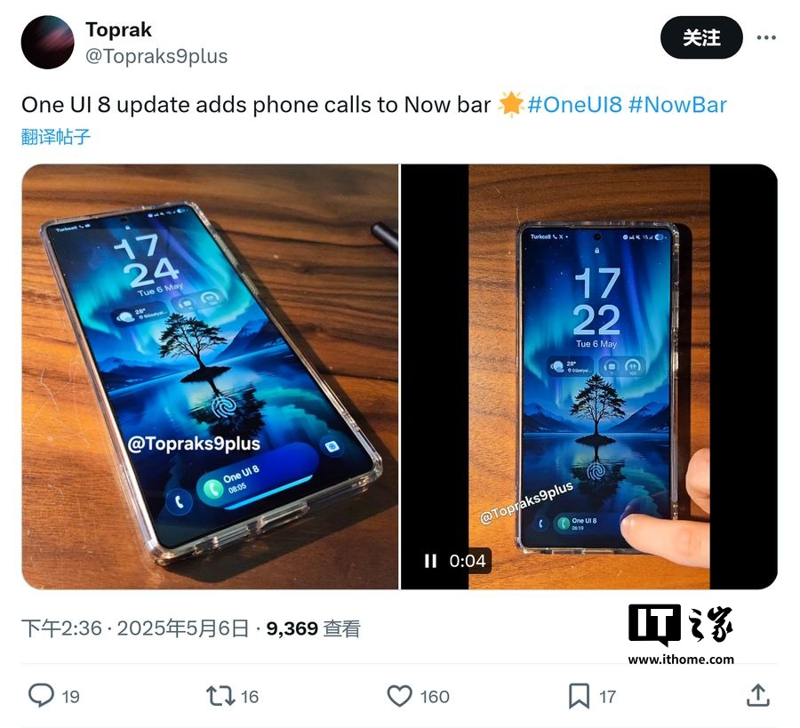 IT之家 5 月 7 日消息,消息源 @Topraks9plus 昨日(5 月 6 日)在 X 平台发布推文,分享了一组三星 One UI 8 早期固件版本图片,重点展示了 Now Bar 改进。