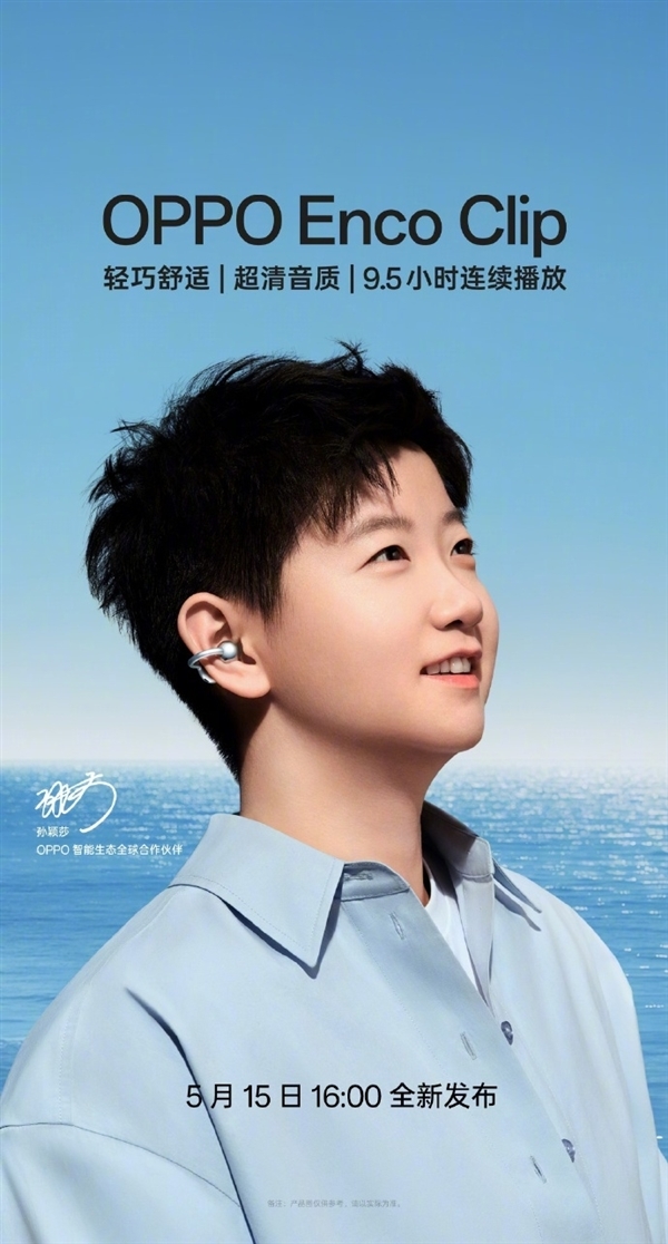 文章来源于互联网:凤凰网-孙颖莎同款 OPPO首款开放式耳机Enco Clip官宣:5月15日发布