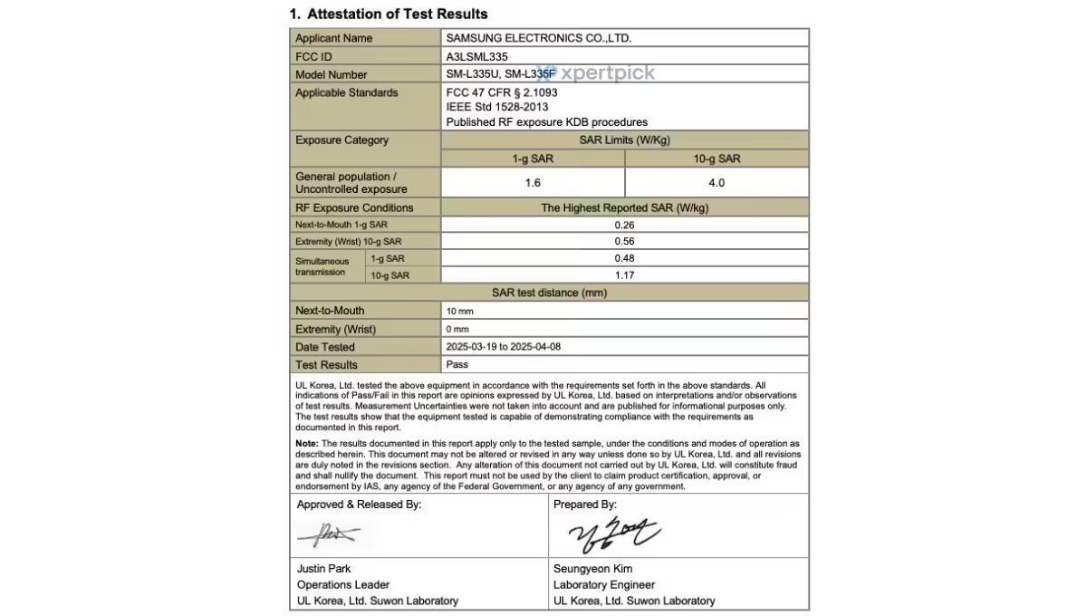 SM-L335F 和 SM-L335U 两款型号现已通过 FCC 认证,认证文件显示该手表还配备 Wi-Fi 802.11 b / g / n / a、蓝牙 5.3、GNSS 定位以及 NFC 近场通信功能。