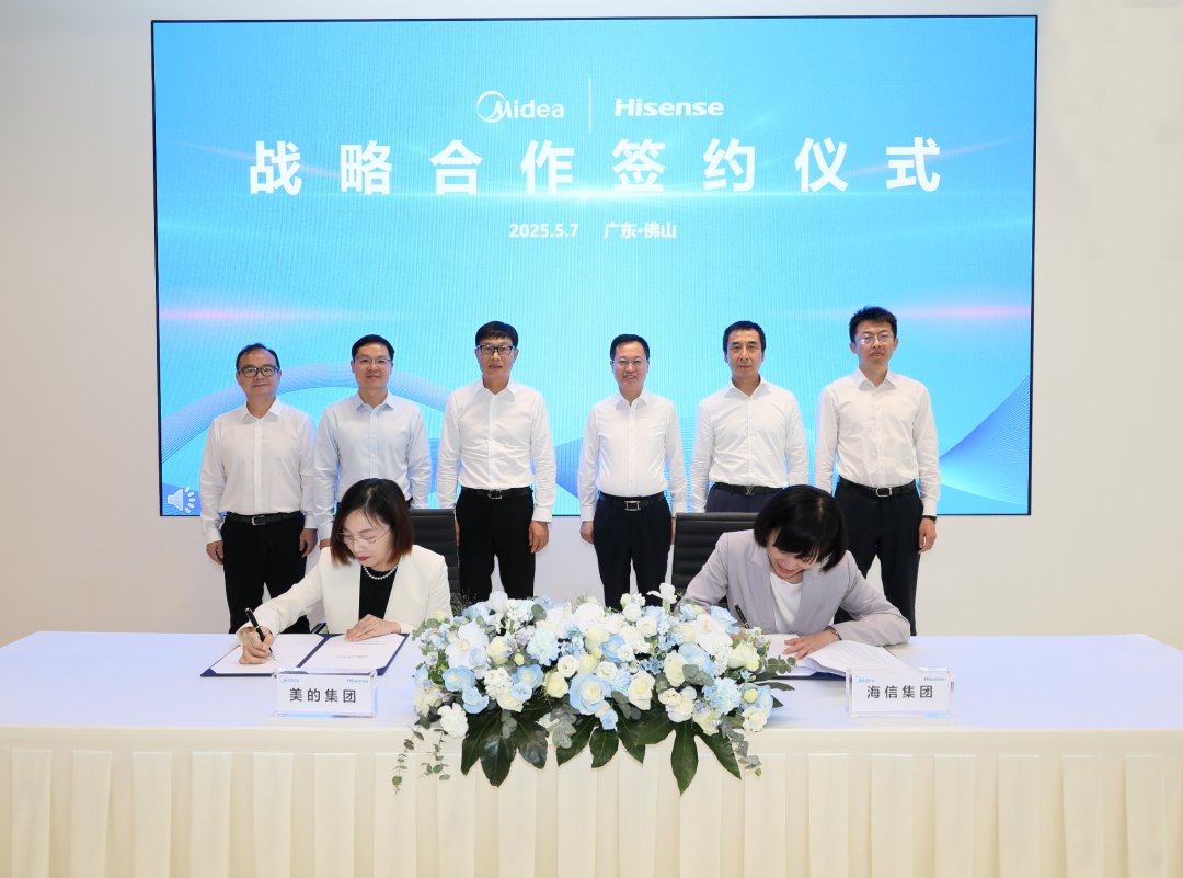 凤凰网科技讯(作者/于雷)5月8日,海信集团与美的集团昨日正式签署战略合作协议,双方将在AI应用、全球先进制造、智慧物流等多个领域展开深度合作。此次合作标志着国内两大家电巨头将通过数字化平台开发、AI智能体应用以及工业互联网建设等举措,共同深化数智化转型进程。