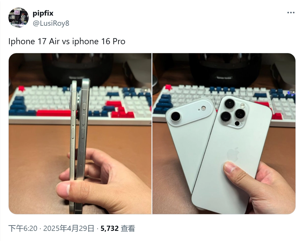 文章来源于互联网:IT之家-初探苹果最薄 iPhone 17 Air 戴手机壳效果:超薄美感不减