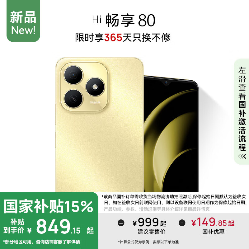 6GB+128GB:建议零售价 999 元、国补价 849.15 元