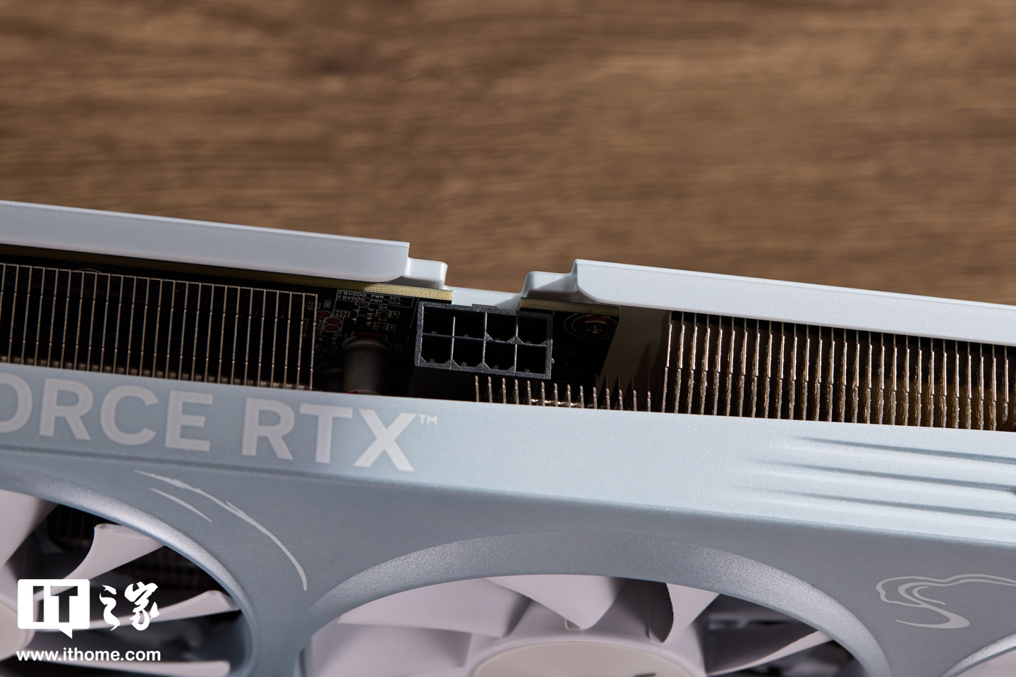 供电接口为单 8pin,对电源的兼容性更高,反扣式设计和背板专属开槽确保了用户拔插供电线缆时更加省力轻松,金手指部分则采用了全新 PCIe 5.0 规格。