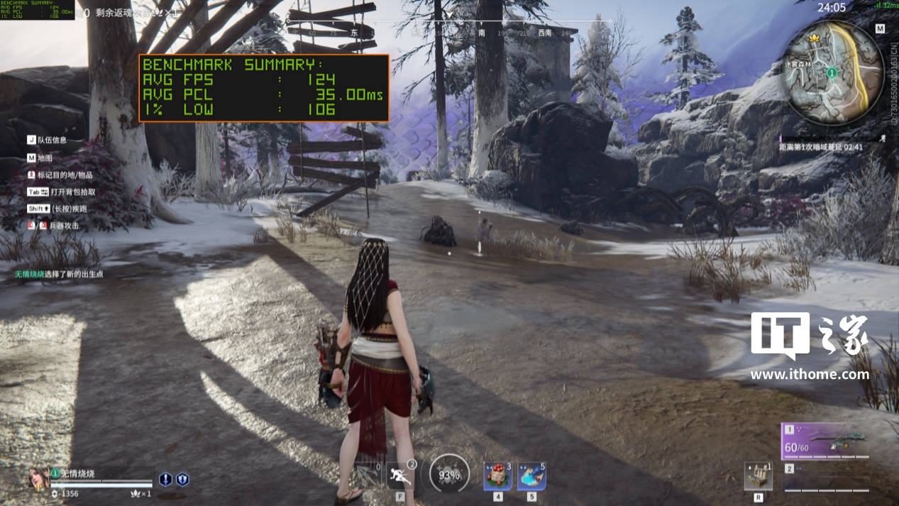 首先,RTX 5060 Ti 在 2K 分辨率 + 高画质下,游戏平均帧数为 124 帧,1% Low 帧 106 帧,平均延迟 35ms;