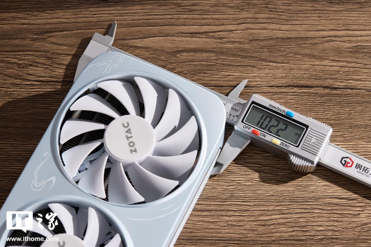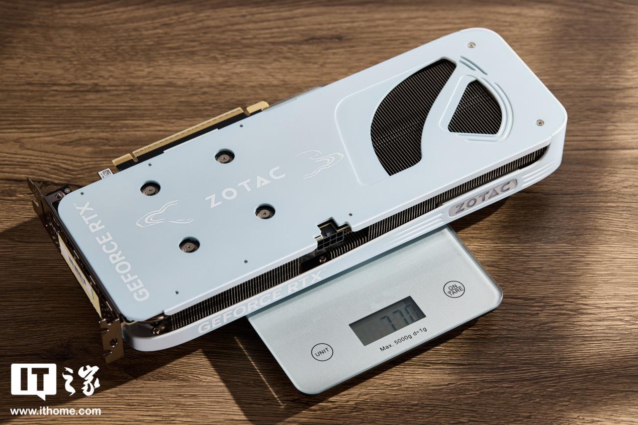 尺寸方面,索泰 GeForce RTX 5060 Ti 8GB 月白 OC 显卡,官方的数据是 293*118*41mm,IT之家给大家进行了实测作为参考,显卡重量仅为 770g。