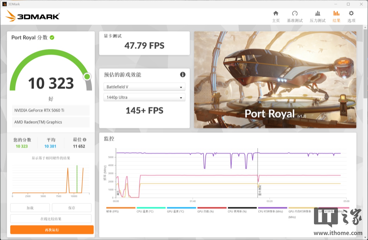 RTX 5060 Ti 的显卡分数为 10323 分;