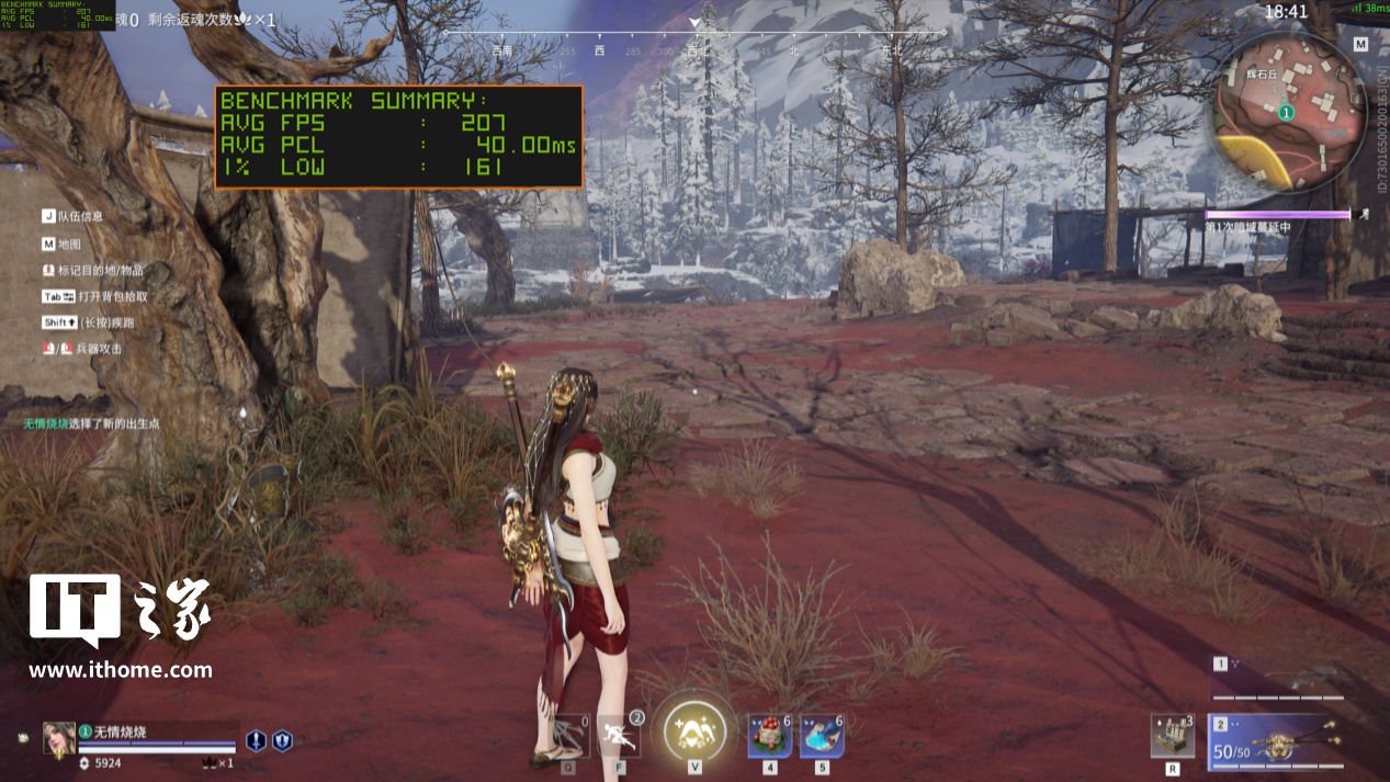 随后,当我们在设置菜单中开启 2x、3x 和 4x 多帧生成选项并打开 DLSS 质量档后,游戏平均帧数分别提升到 159 帧、191 帧、207 帧,而游戏平均延迟方面分别为 26ms、33ms 和 40ms。开启多帧生成和 DLSS 后,游戏的延迟肯定会有一定提升,《永劫无间》在不同倍数的帧生成选项下延迟递增非常规律,就目前表现来说 2K 分辨率下开个 3x 多帧生成的游戏体验就比较不错了。