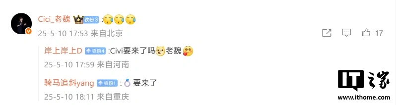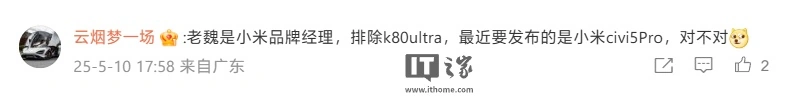 文章来源于互联网:IT之家-王腾微博发文亮出新机小尾巴,网友期待小米 15S Pro 及 Civi 5 Pro