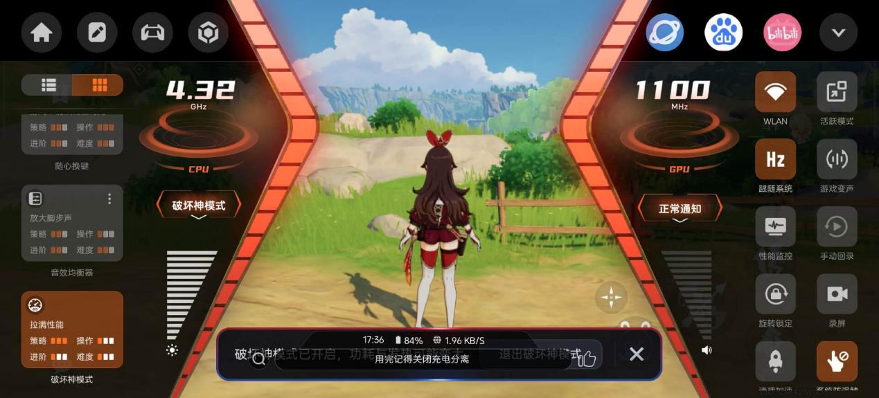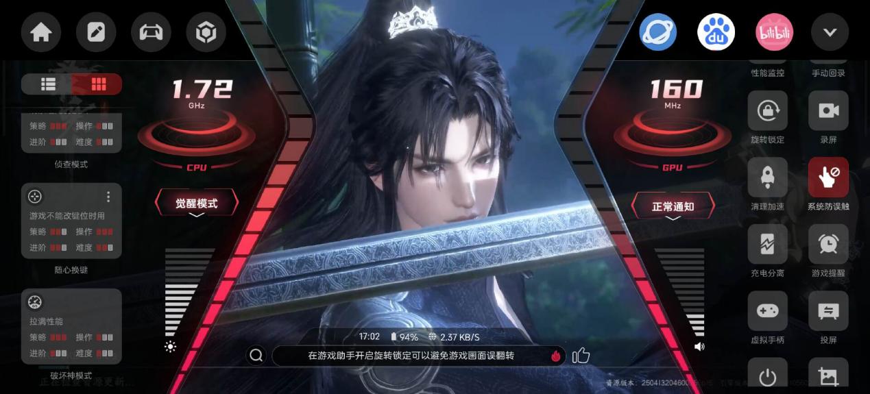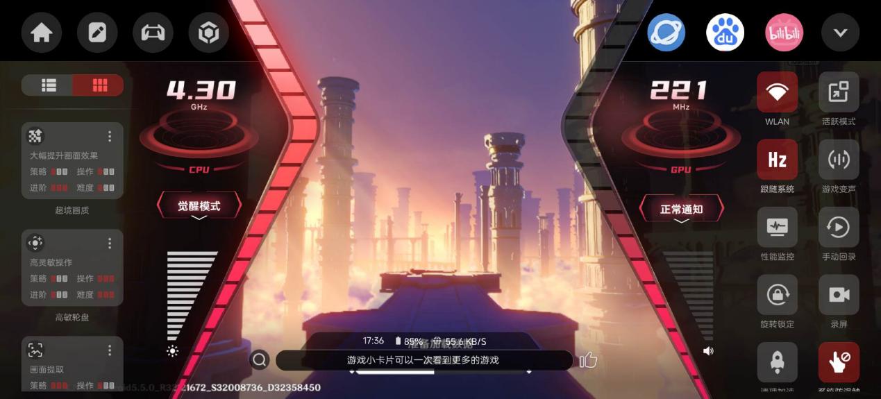 而不仅仅是「超境画质」选项,通过游戏侧边栏,你可以呼出游戏面板,这里给出了极为丰富的游戏选项。包括各种性能模式的选择,丰富度极高,包括性能监控、全能滤镜、改键位等等,完全是游戏手机的玩法,毕竟隔壁就是红魔,懂的都懂。