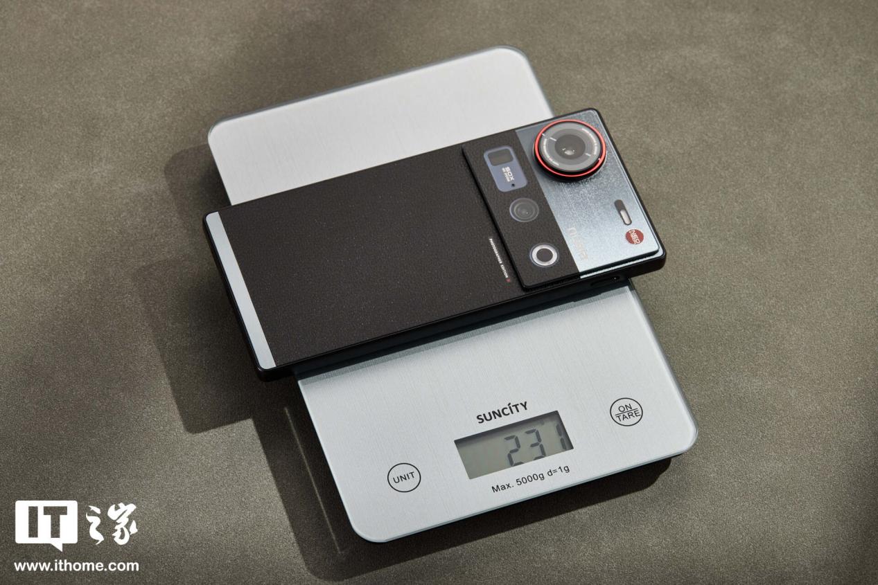 这个重量和厚度中规中矩。但比较惊喜一点的是,努比亚 Z70S Ultra 摄影师版摄像头模组尽可能的克制了 35mm 主摄因为物理尺寸的原因所导致的凸起,视觉侵入感并不严重。