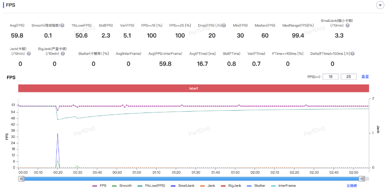 并且,这里的 120 帧并非插帧实现,而是 perfdog 完全可以监测到(如上图绿色箭头),实打实的 120 帧。