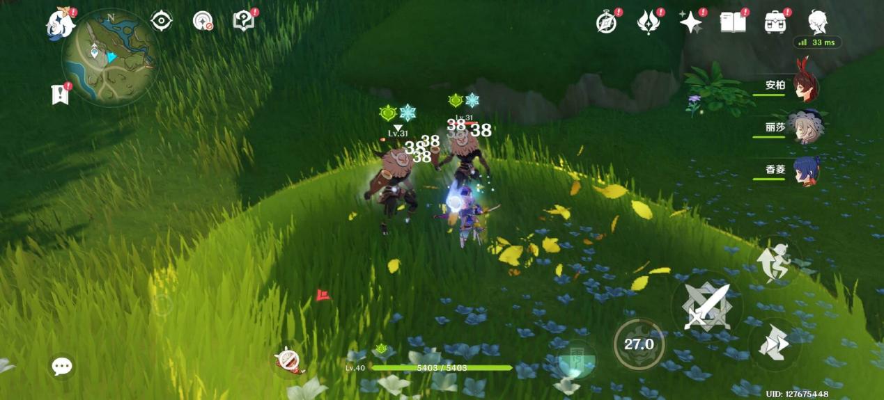 依旧选择《原神》,最高画质 + 60 帧,以日常跑图为主,遇怪打怪。