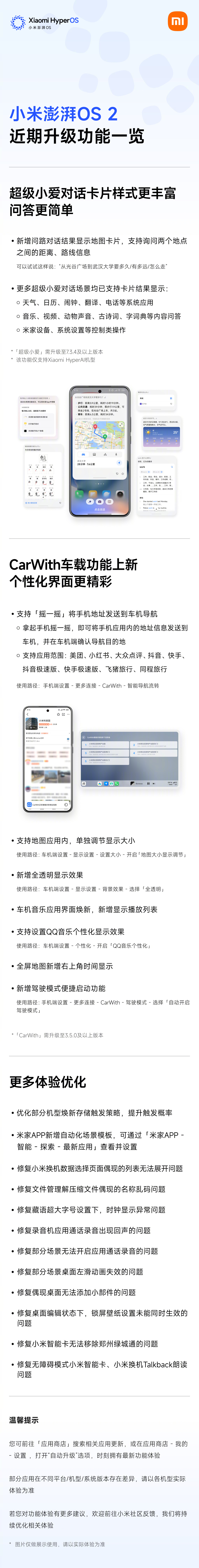 文章来源于互联网:IT之家-小米澎湃 OS 2 近期升级功能一览发布:超级小爱对话卡片样式丰富、CarWith 上新