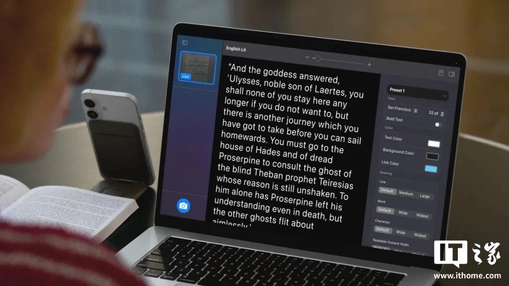 无障碍阅读器是苹果推出的一项系统级新功能,旨在帮助有阅读障碍(如阅读困难症或低视力)的用户更轻松地阅读文本。该功能支持 iPhone、iPad、Mac 和 Apple Vision Pro,用户可以根据自己的需求自定义字体、颜色、间距,并支持语音朗读功能。无障碍阅读器可以从任何应用中启动,并且内置于 iOS、iPadOS 和 macOS 的放大镜应用中,方便用户在现实世界中与文本交互,例如阅读书籍或餐厅菜单。