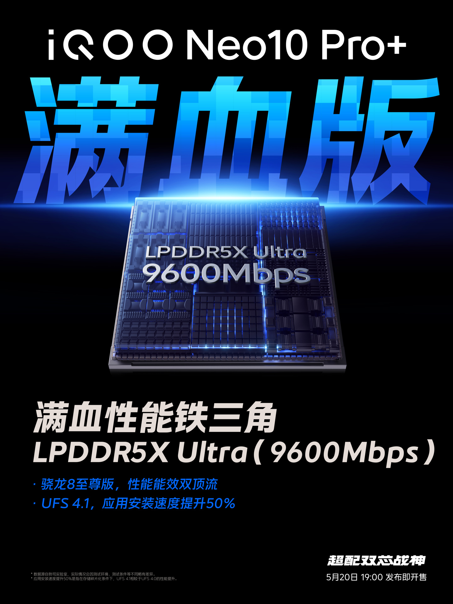 文章来源于互联网:IT之家-iQOO Neo10 Pro+ 手机预热:蓝晶 × 骁龙 8 至尊版、LPDDR5X Ultra+UFS 4.1 组合