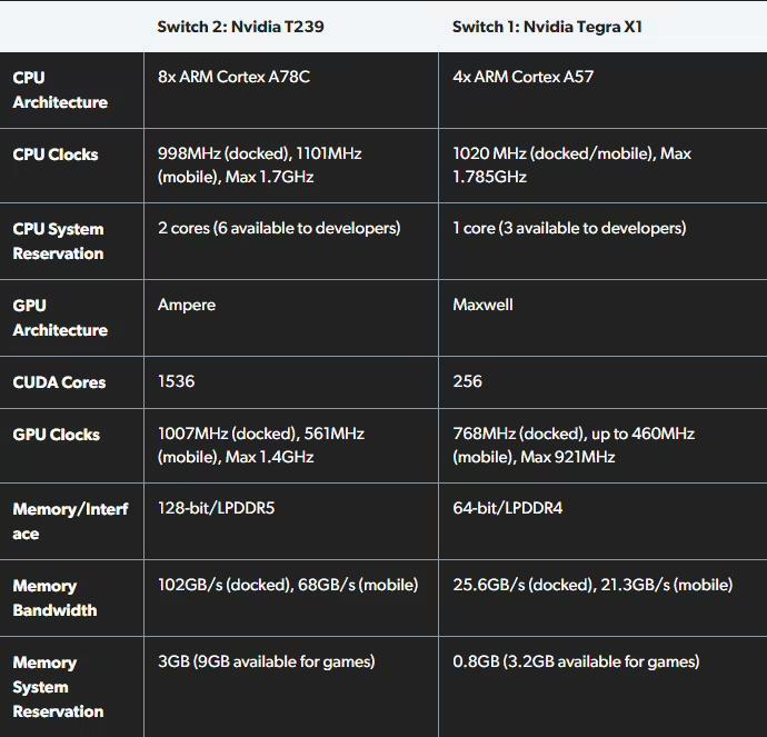 文章来源于互联网:凤凰网-Digital Foundry揭秘任天堂Switch2技术规格:1536CUDA核心GPU、12GB内存