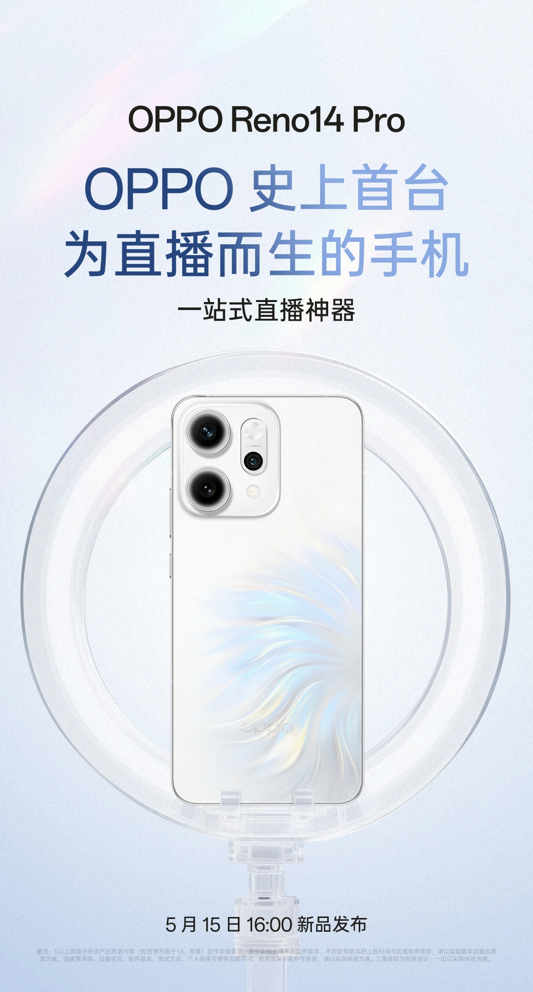 IT之家 5 月 15 日消息,OPPO Reno14 Pro 手机今日正式发布,号称是“OPPO 史上首台为直播而生的手机”。