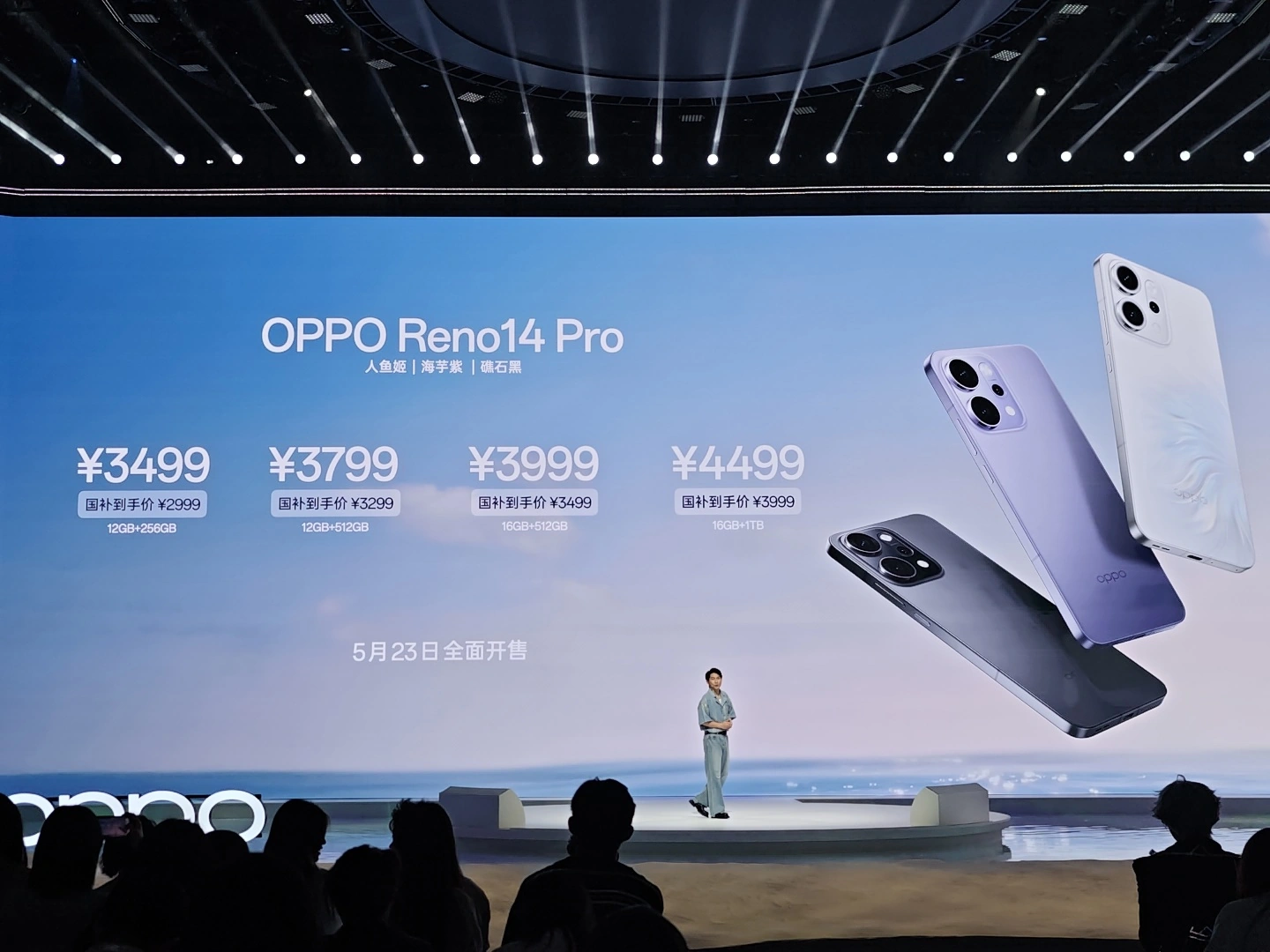 IT之家从发布会获悉,OPPO Reno14 Pro 手机 12GB + 256GB 存储起步,售价 3499 元起,国补后 2999 元起。