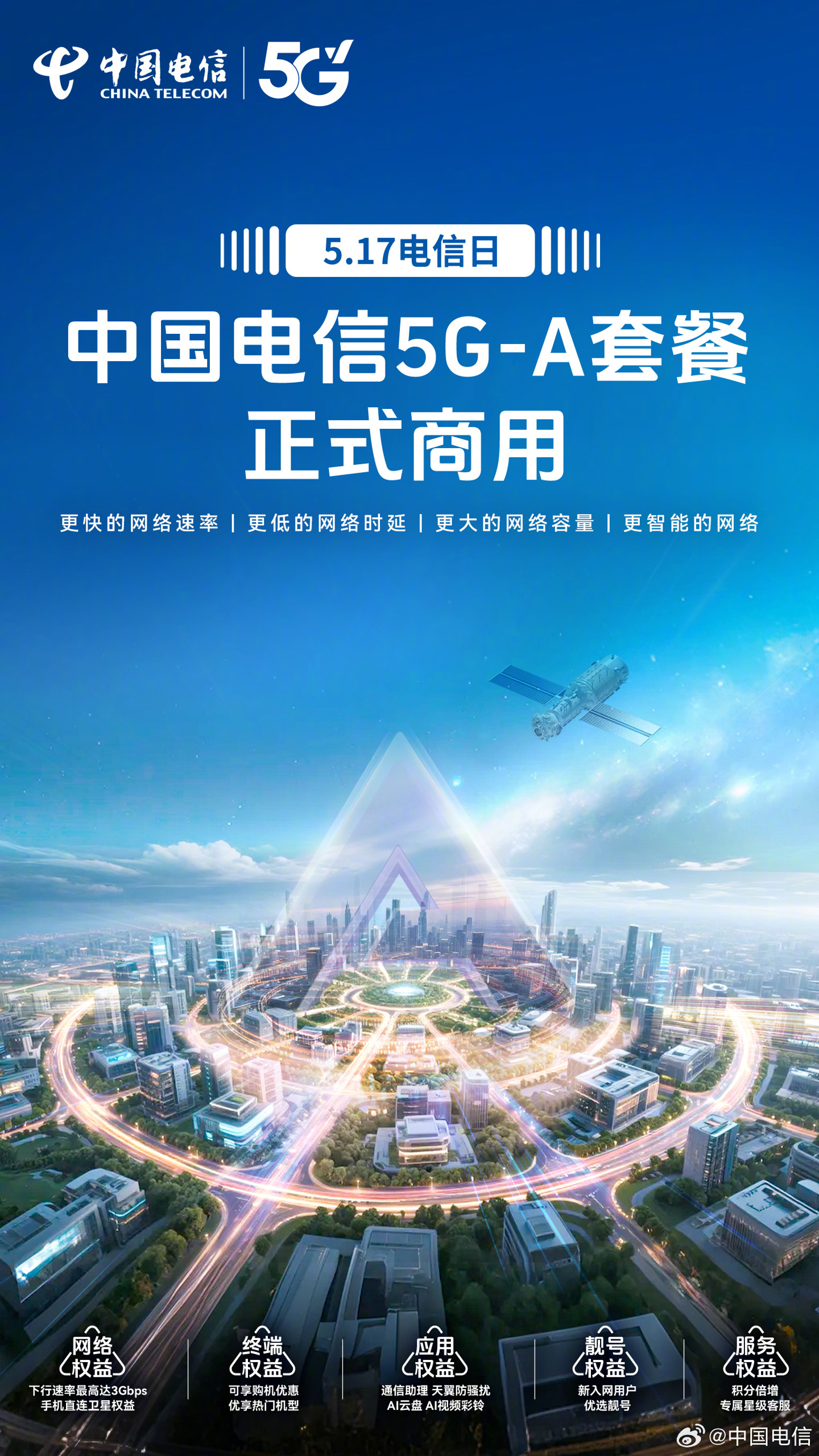 IT之家 5 月 16 日消息,中国电信官微今日宣布,其 5G-A 套餐将于 5 月 17 日正式商用,带来更快的网络速率、更低的网络时延、更大的网络容量和更智能的网络。