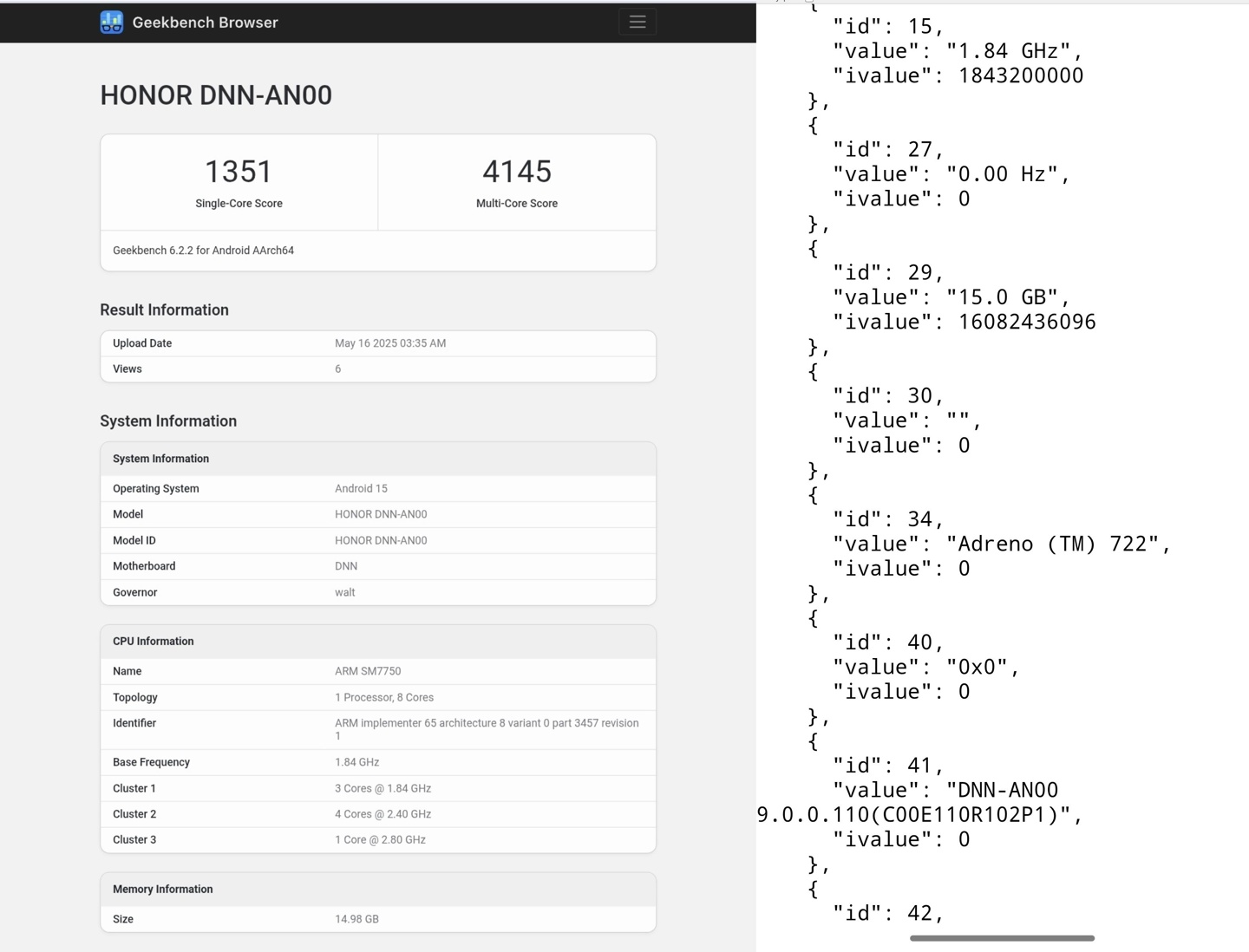 IT之家 5 月 17 日消息,科技媒体 The Tech Outlook 昨日(5 月 16 日)发布博文,报道称中国版荣耀 400 手机现身 GeekBench 跑分库,6.2.2 版本单核成绩为 1351 分,多核成绩为 4145 分。