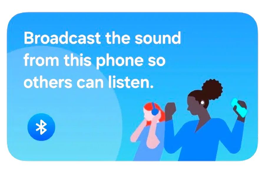 在 One UI 8 泄露版本中,Auracast 界面采用色彩鲜艳的大横幅,通过简洁的插图和文字直观展示 Auracast 的核心作用 —— 无线广播音频给他人。