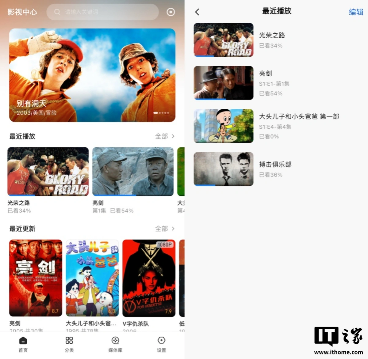 配合影视中心和音乐应用对本地的影音资料进行分类管理后,的确带来了更便捷美观的体验。