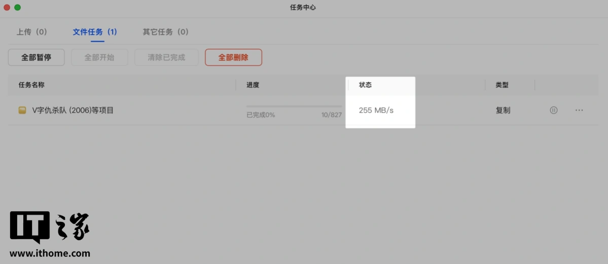 作为存储设备,读、写速度还是非常关键的,那么搭载了 2.5GbE 网口的绿联 NAS 私有云 DH4300 Plus 实际读写速度如何呢,在实际测试中,从家里的台式机通过有线网络向 NAS 中传输文件,能够稳定在 250MB/s,符合 2.5G 网口的速率。