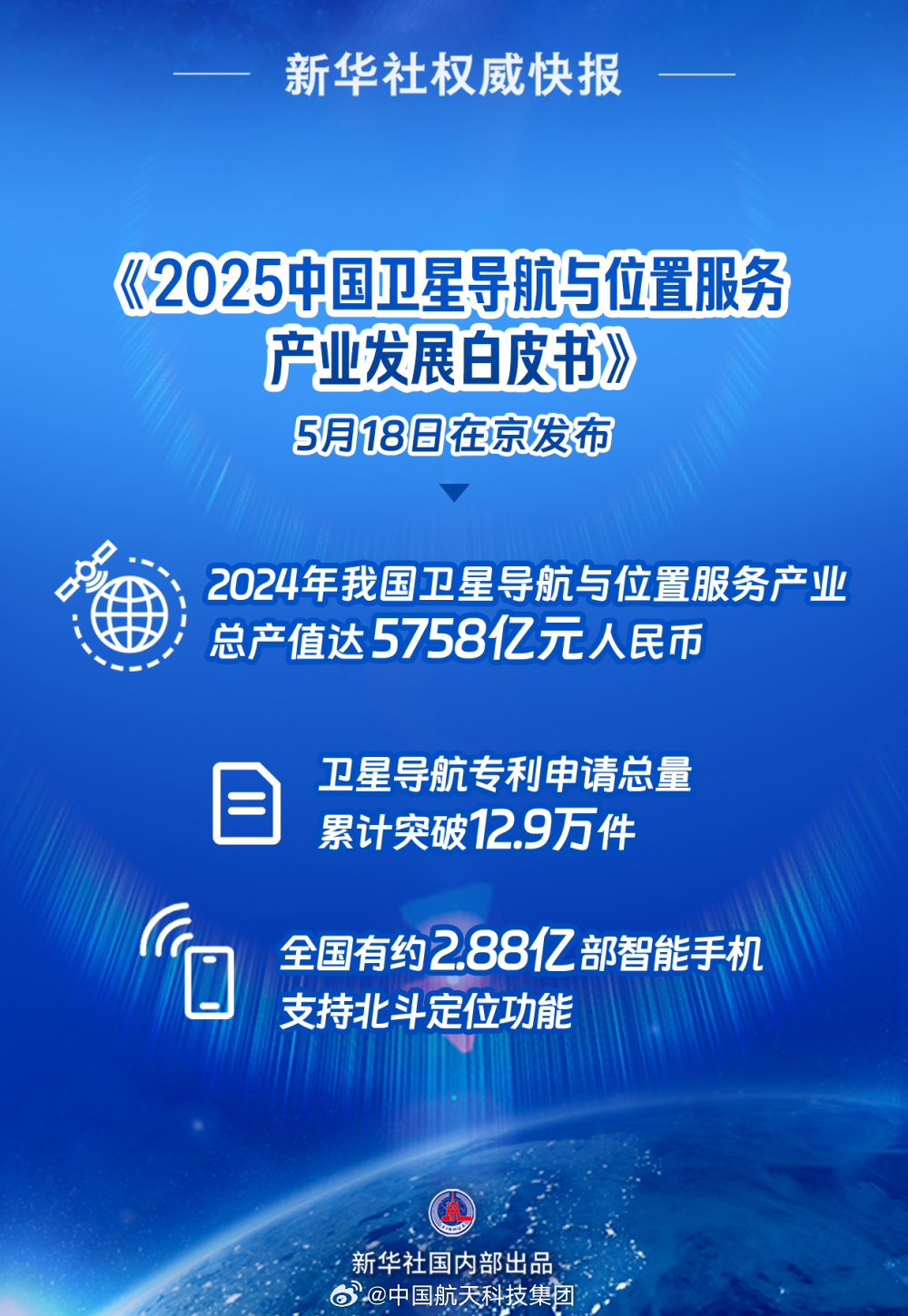 IT之家 5 月 18 日消息,据新华社报道,今日在京发布的《2025 中国卫星导航与位置服务产业发展白皮书》显示,2024 年我国卫星导航与位置服务产业总产值达 5758 亿元人民币,同比增长 7.39%;卫星导航专利申请总量累计突破 12.9 万件,继续保持全球领先。